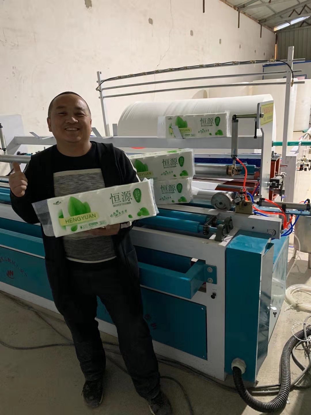 安徽肥西縣張總在2016.7.21號(hào)在恒源紙品機(jī)械訂購(gòu)一套1880衛(wèi)生紙復(fù)卷機(jī),僅僅兩年時(shí)間兩年,張總的衛(wèi)生紙加工廠已達(dá)到月銷百噸,使用原來(lái)的1880復(fù)卷機(jī)生產(chǎn)產(chǎn)能嚴(yán)重不足,所以又添加新設(shè)備——全自…......